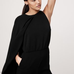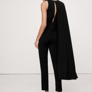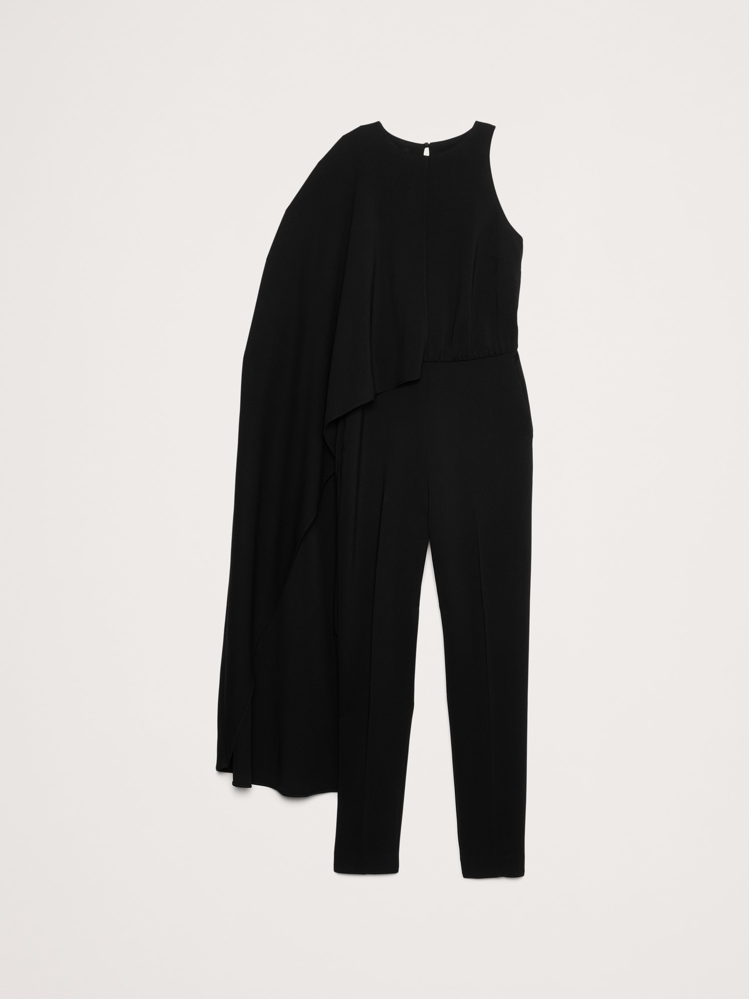 Your sign to RSVP yes. Crafted from a matte crepe fabric with cape shoulder detail, this jumpsuit has a slim fit through the hips with a slim, tapered leg.