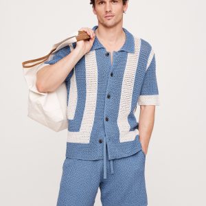 We wanted this resort shirt to capture the feel of the best handmade pieces so we chose a stitch pattern that mimics the look of true crochet, in 100% certified-organic cotton. Pair with the matching shorts to make it a set.