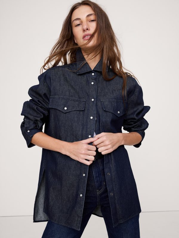 A shirt jacket that says \”I got this\”, we kept the fit oversized so it looks like the best vintage finds. Crafted in a soft, cotton denim that’s ideal for layering year-round.