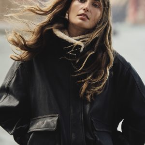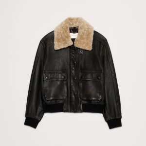 We looked to the archives to style this luxurious leather jacket. The style itself is leans more minimalist because the distressed leather and shearling collar are special enough.