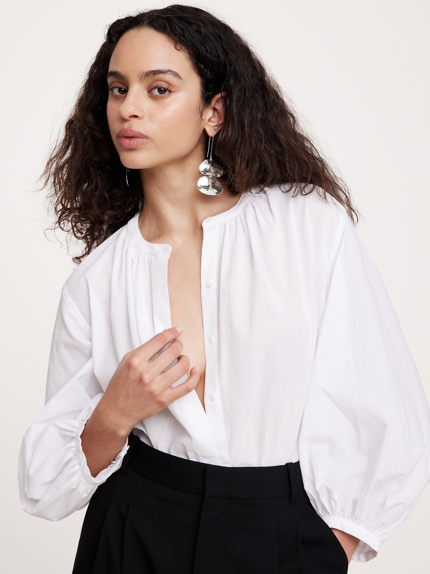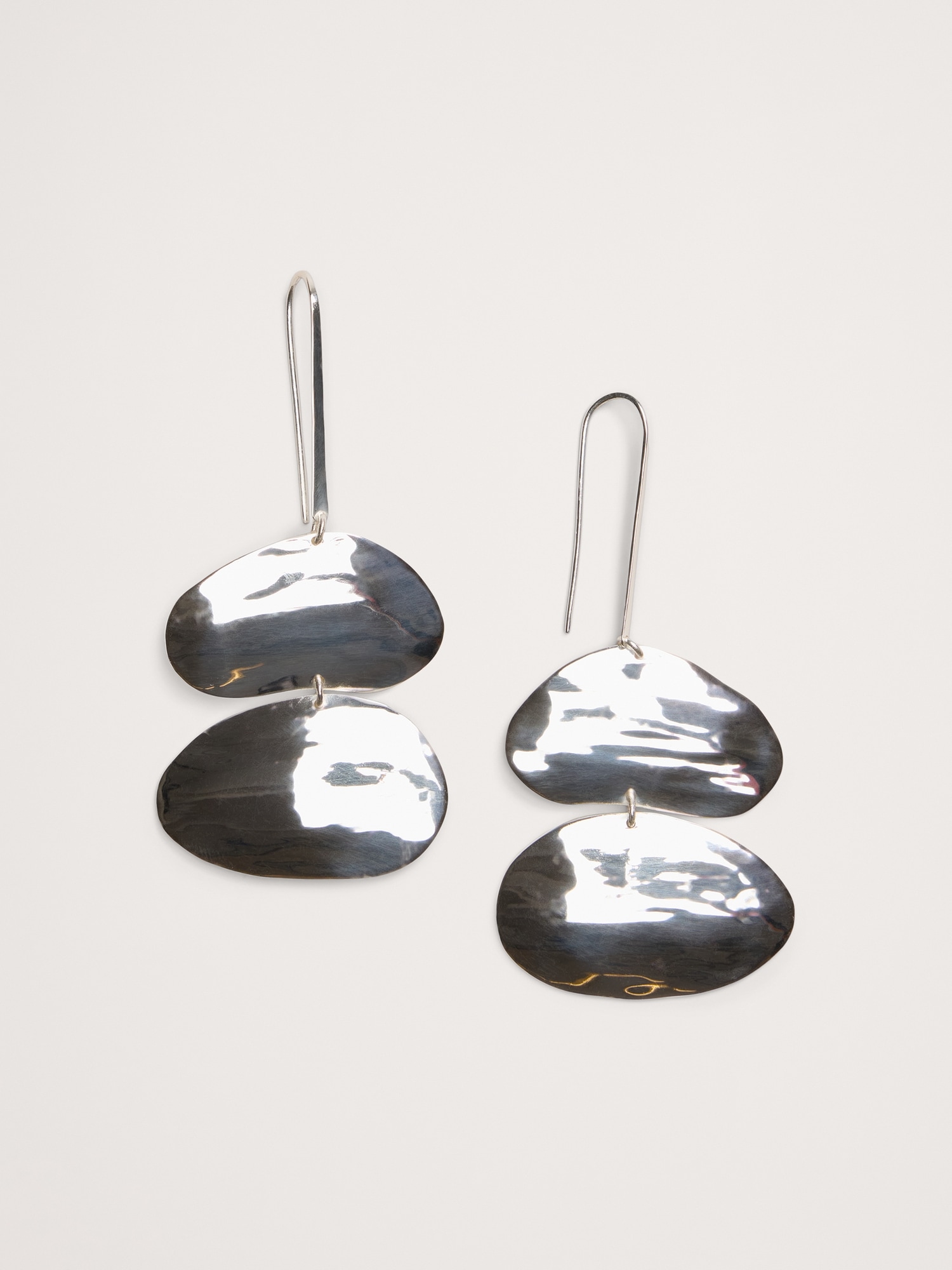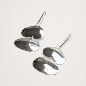 A duo of abstract ellipses with gently undulating texture are joined with a stylish long ear wire in these modern earrings.