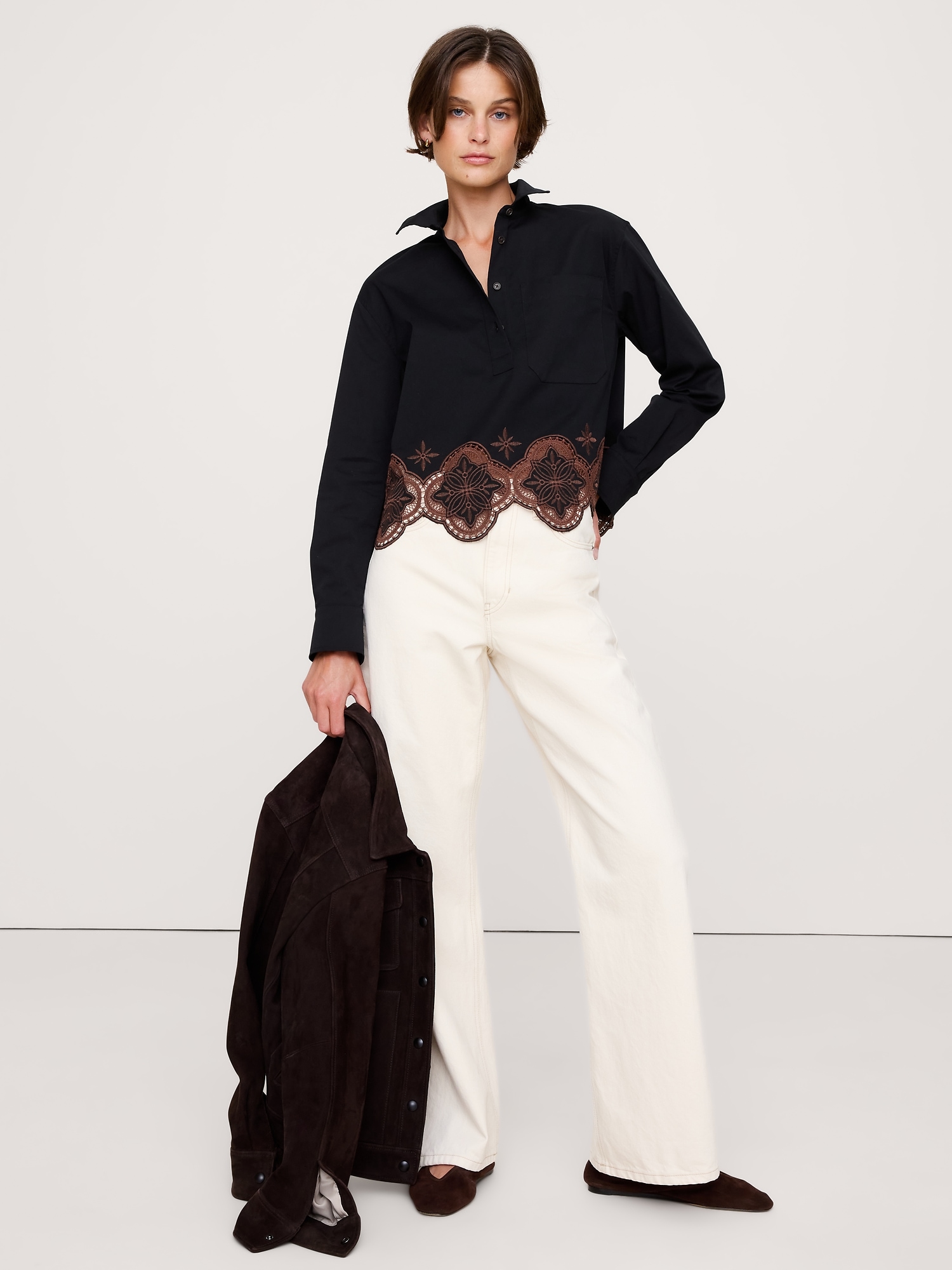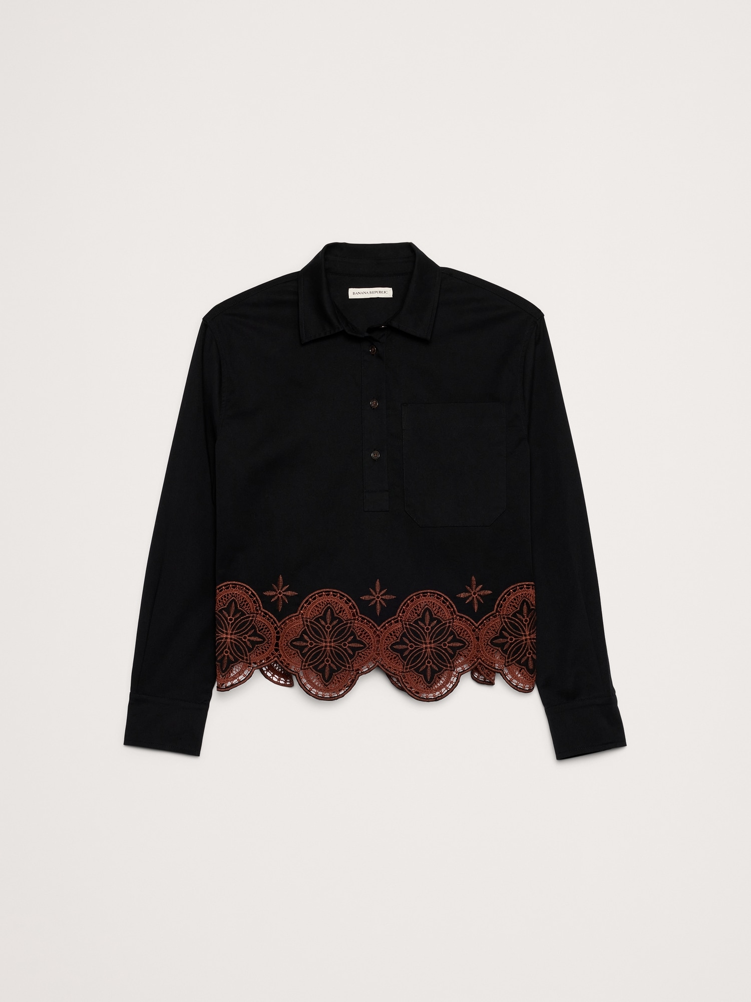 An ode to traditional anglaisein our best-selling popover shirt silhouette. This one’s crafted in a stretch-cotton twill and finished with a garment wash for softness.