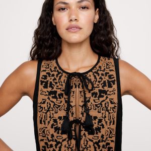 Crew neck with tie-front closures.