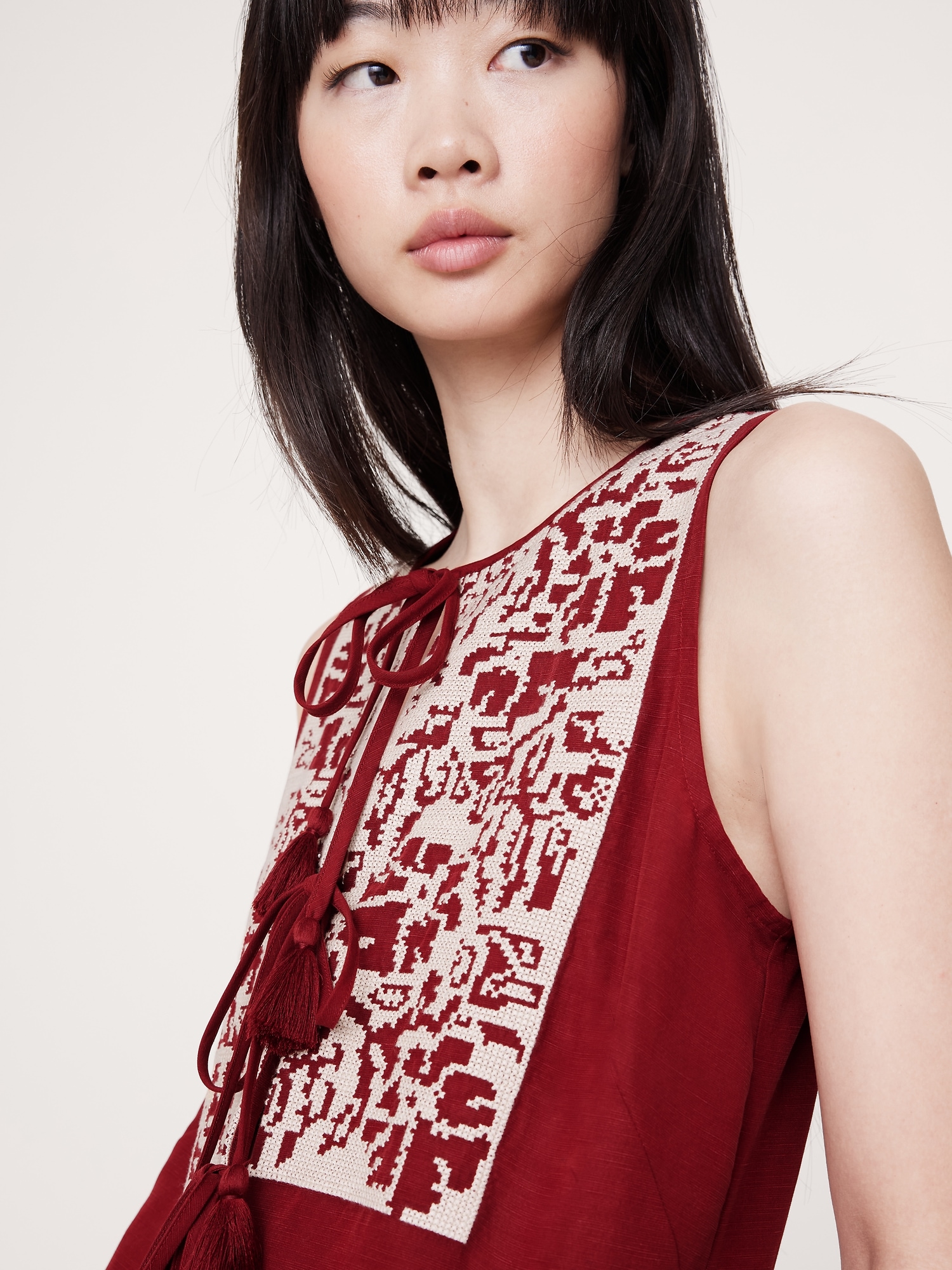 The embroidered dress we’re wearing everywhere, cut it in a blend of silky TENCEL™ lyocell and linen that looks (and feels) really good on.