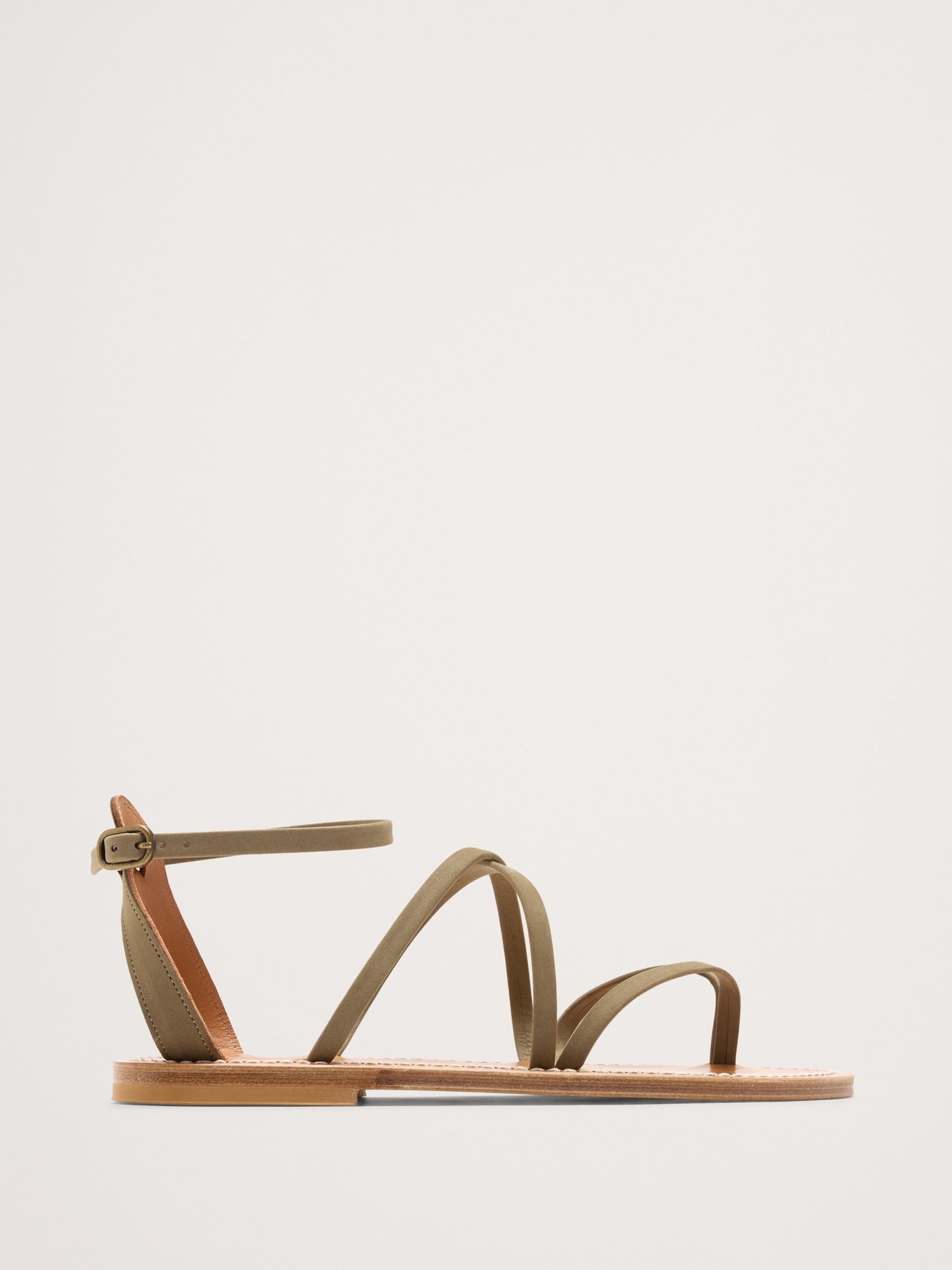 Elegant, yet relaxed, the Epicure sandal features straps that cross over the foot, with a fan-shaped heel support and buckled ankle strap to provide provides a secure fit.