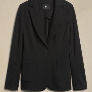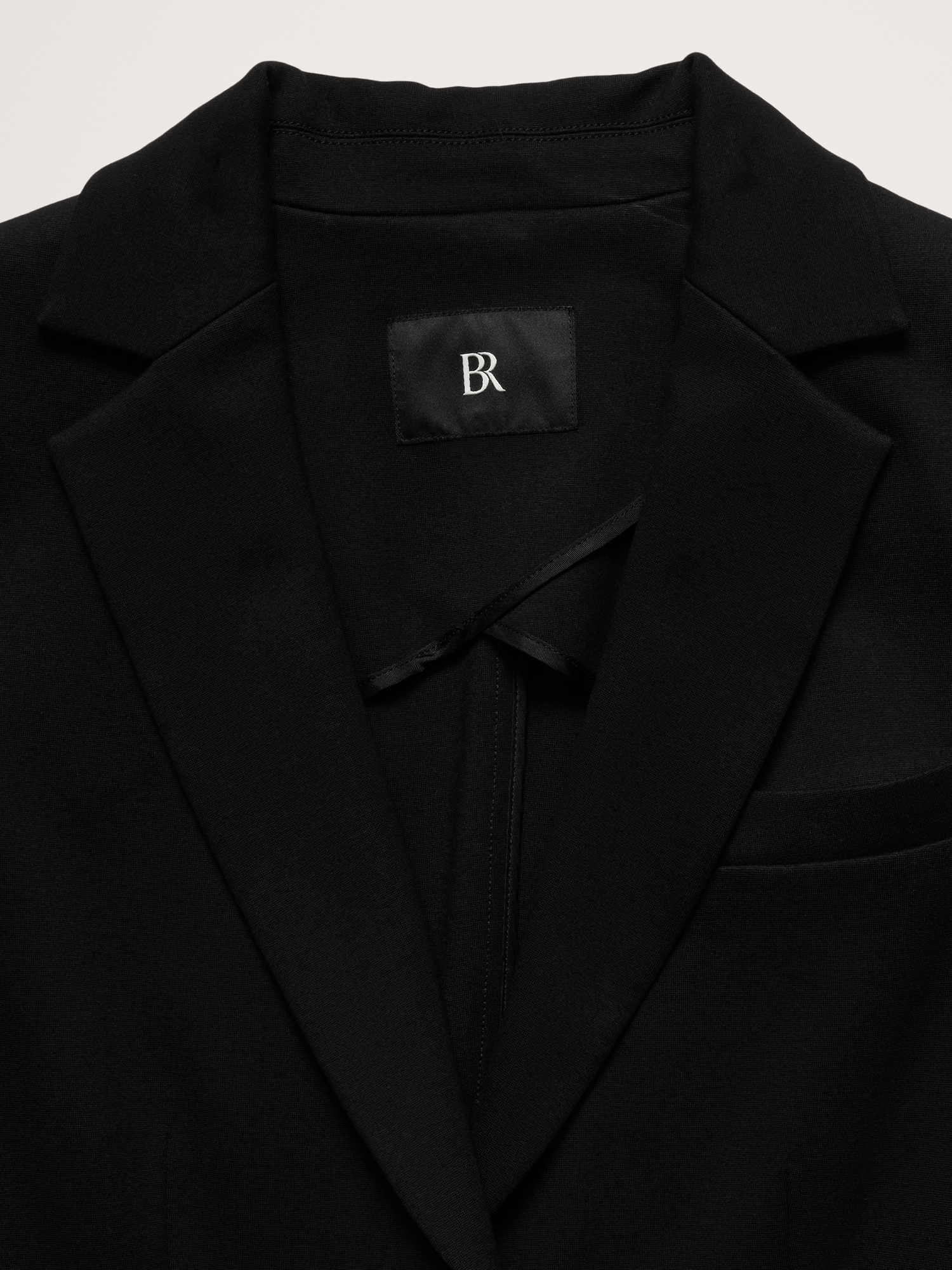 This at-ease blazer is made from our Everywhere Ponte fabric—a favorite for its dressed-up look and high stretch for comfort.. We added small shoulder pads for a tailored silhouette, but kept the blazer unlined to make the most of this beautiful stretch fabric.