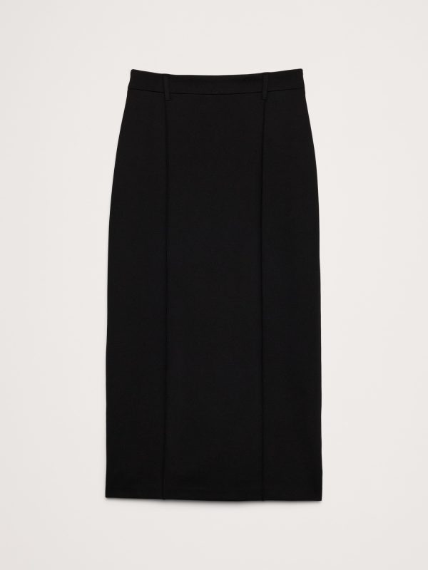 A tailored, pencil skirt, built for comfort. We cut this one in a longer, midi length from our Everywhere Ponte fabric—a favorite for its dressed-up look and high stretch.