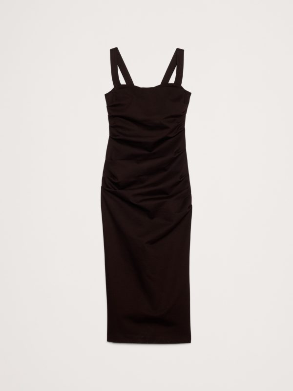 This ruched midi dress uses our Everywhere Ponte fabric—a favorite for its dressed-up look and high stretch for comfort. Here, we chose a fitted silhouette and a sweetheart neckline.