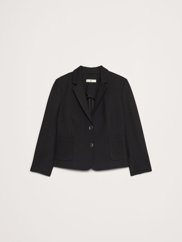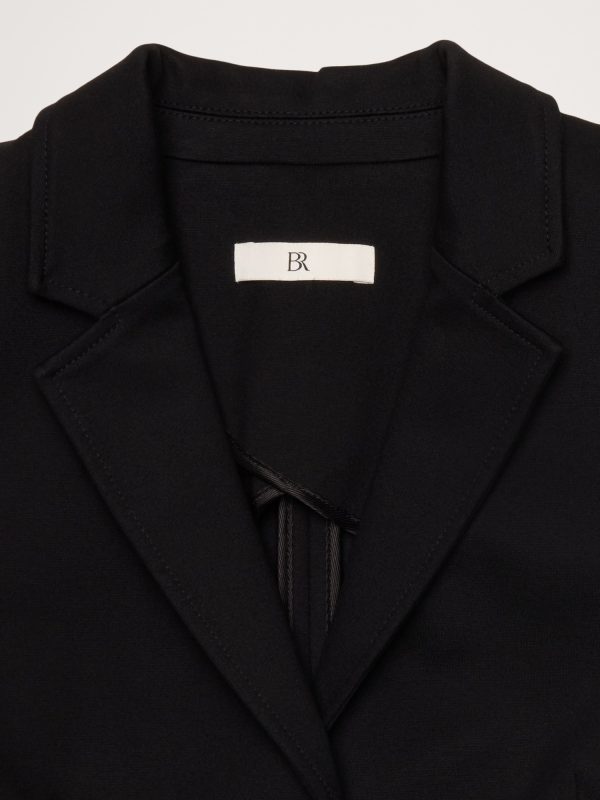 We cut this blazer in shrunken proportions using our Everywhere Ponte fabric—a favorite for its dressed-up look and high stretch for comfort. We added bracelet-length sleeves and small shoulder pads for a tailored silhouette, but opted for a butterfly lining at back.