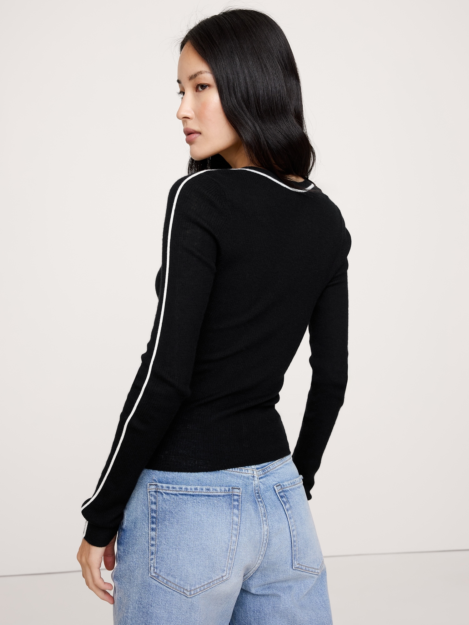You have it all. This incredible cashmere henley uses a featherweight yarn that’s oh-so-soft—without sacrificing warmth—and just a little heavier than a t-shirt in weight.Slim. Sits close to the body.