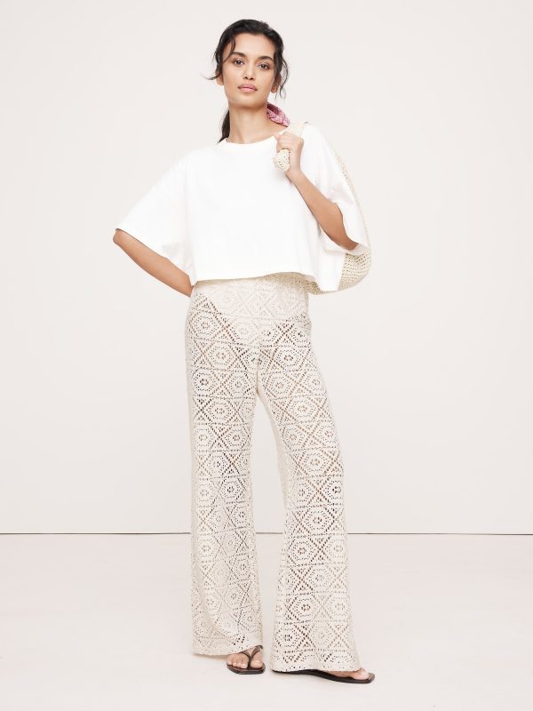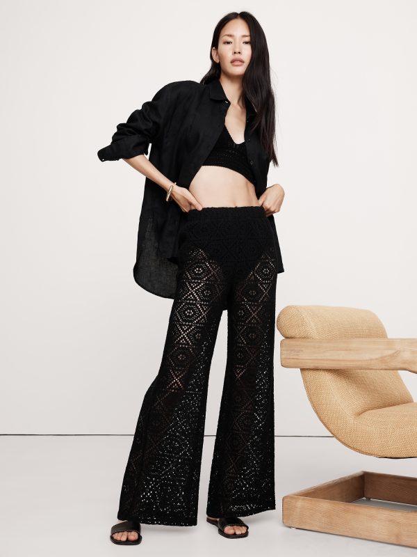 Designed for long weekends, we cut these flared pants in a soft cotton-blend lace we love for its crochet-like appearance.