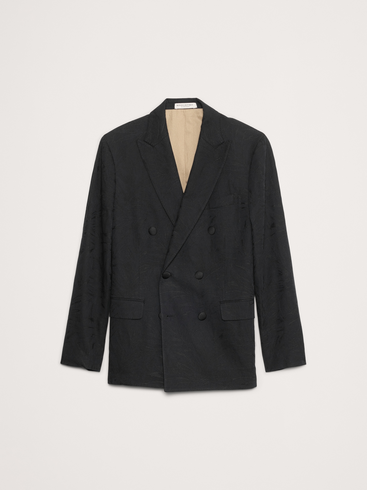 Playful and understated, we cut this suit jacket in a jacquard fabric we love for its subtle jacquard floral pattern. Look closely: this fabric has a slight sheen to it so it reads more dressed-up.