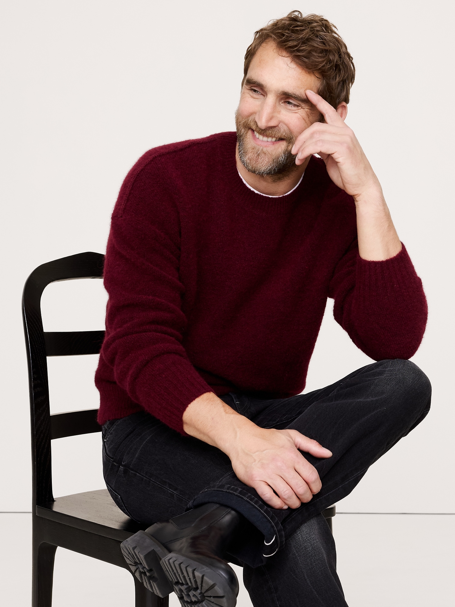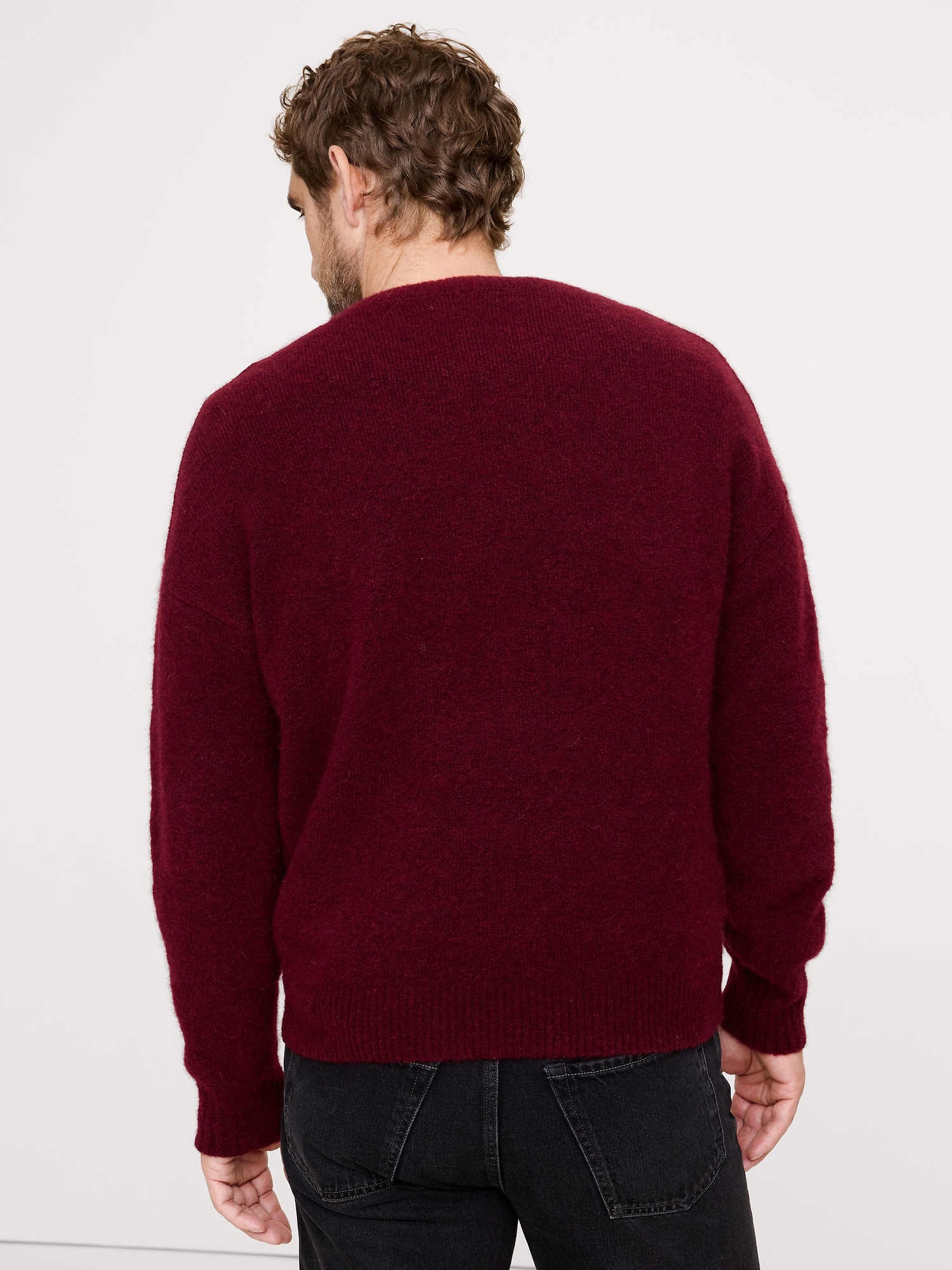So soft, so warm. This crew-neck sweater is knitted from a blend of alpaca and wool. Here, we kept the fit relaxed through the shoulders, but tapered through the waist so it reads a little retro.