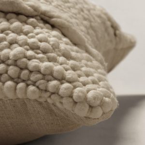 Delight in the luxurious texture of natural materials, these beautiful pillows are woven from a mix of undyed Merino wool. These fibers are carded and woven by hand to create spectacular and irregular dimension, ensuring no two pieces are exactly alike. Why hand-carded? Increasingly uncommon, hand-carding wool—a specialized process akin to combing out fibers before they’re spun into yarn—produces a luxuriously irregular effect that reveals the natural beauty of this Merino wool as well as the expert hand of its maker, something which we celebrate. Canvas reverse panel. Handmade in India. Pillow inserts are sold separately and are sized slightly larger than our pillow covers to create a fuller effect. #619459
