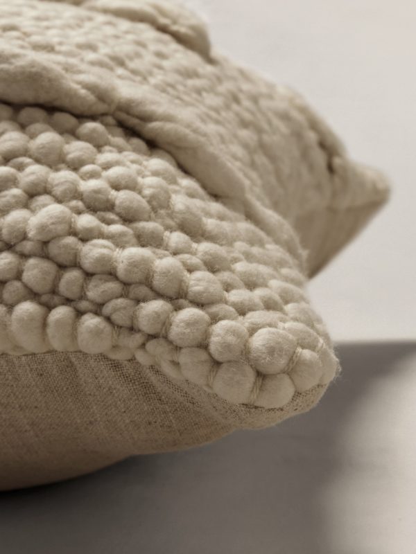 Delight in the luxurious texture of natural materials, these beautiful pillows are woven from a mix of undyed Merino wool. These fibers are carded and woven by hand to create spectacular and irregular dimension, ensuring no two pieces are exactly alike. Why hand-carded? Increasingly uncommon, hand-carding wool—a specialized process akin to combing out fibers before they’re spun into yarn—produces a luxuriously irregular effect that reveals the natural beauty of this Merino wool as well as the expert hand of its maker, something which we celebrate. Canvas reverse panel. Handmade in India. Pillow inserts are sold separately and are sized slightly larger than our pillow covers to create a fuller effect. #619459