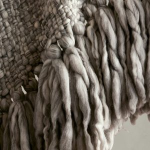 Look closely, this delightfully soft and warm throw blanket is crafted from a mix of undyed Merino wool. The fibers are carded, spun, and woven by hand to create spectacular and irregular dimension with long fringed ends, ensuring no two pieces are exactly alike. Why hand-carded? Increasingly uncommon, hand-carding wool—a specialized process akin to combing out fibers before they’re spun into yarn—produces a luxuriously irregular effect that reveals the natural beauty of this Merino wool as well as the expert hand of its maker, something which we celebrate. Handmade in India. #618914