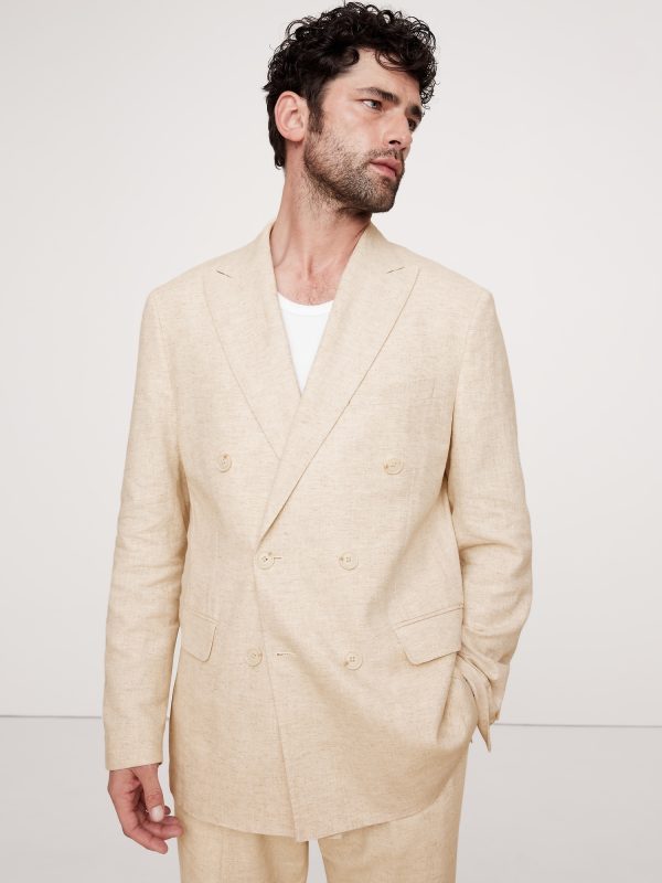 Herringbone Cotton-Linen Double-Breasted Suit Jacket
