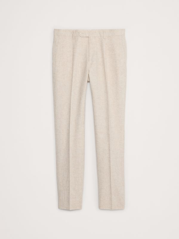 Designed with warm climates in mind, this sleek suit pant is cut from an herringbone fabric that blends together soft cotton and luxurious linen.