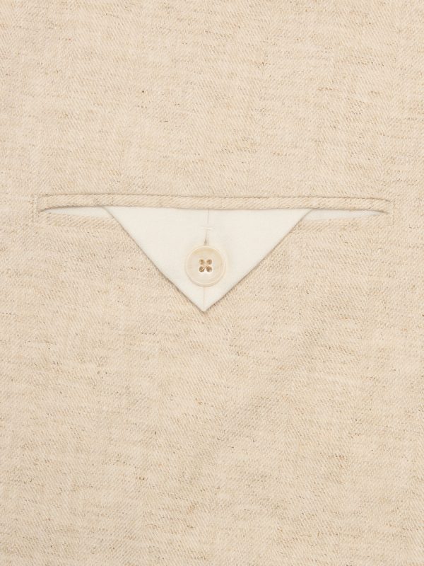 Designed with warm climates in mind, this sleek suit jacket is cut from an herringbone fabric that blends together soft cotton and luxurious linen. Here, we left the jacket unlined through the back for even better breathability.