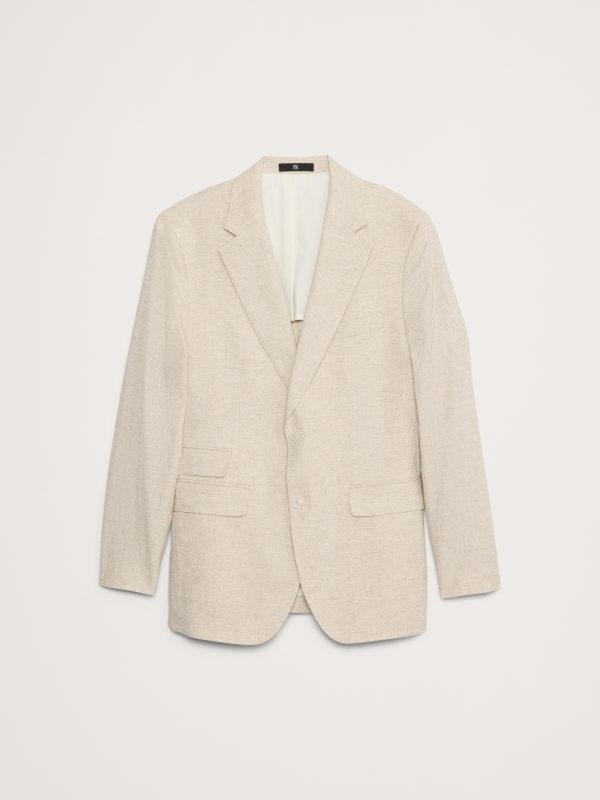 Designed with warm climates in mind, this sleek suit jacket is cut from an herringbone fabric that blends together soft cotton and luxurious linen. Here, we left the jacket unlined through the back for even better breathability.