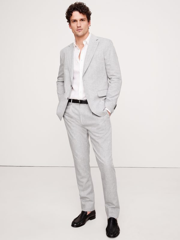 Designed with warm climates in mind, this suit jacket is cut from a herringbone linen-cotton fabric. Here, we left the jacket unlined through the back for even better breathability.