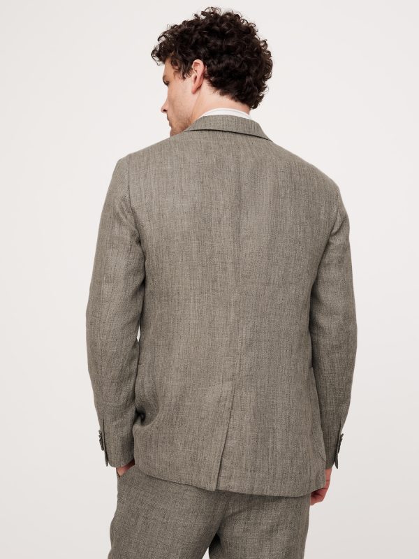 We cut this suit jacket with warm weather in mind, picking a beautiful, certified-European linen fabric and leaving the back unlined so it stays cool even when things heat up. Look closely: we love this fabric’s traditional herringbone weave and variegated taupe color.