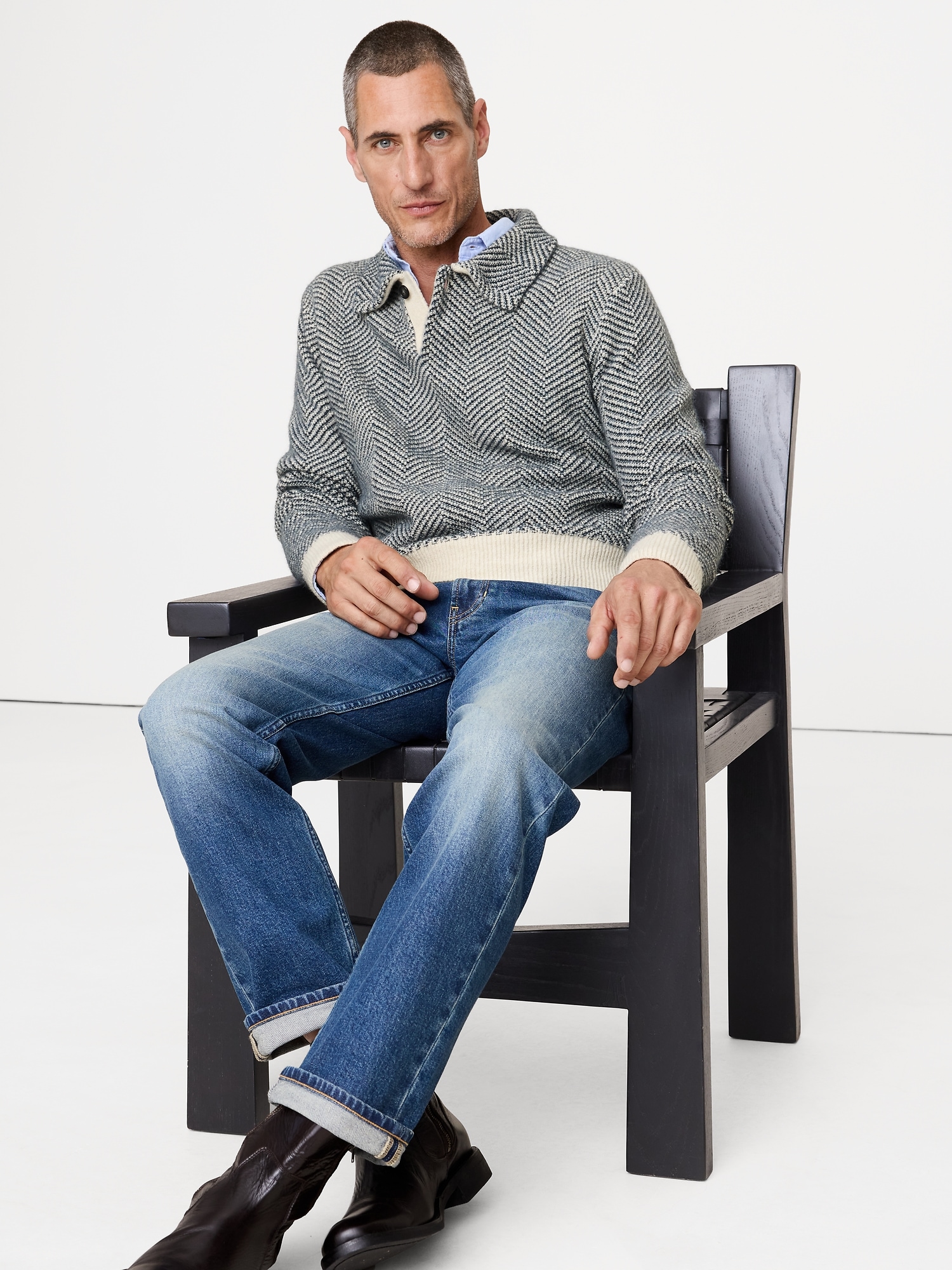The endless styling possibilities of a polo meet the refined look of a vintage-inspired sweater with a herringbone jacquard stitch.
