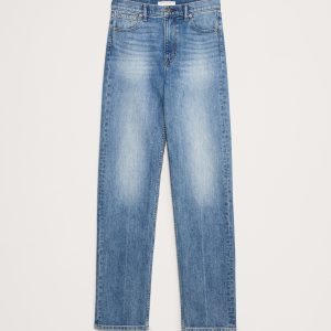 A nod to the 90s. These straight-leg jeans have a high-rise and stovepipe-straight fit through the leg. Our designers selected a soft denim with stretch for comfort.