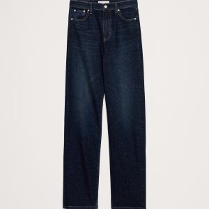 High-Rise 90s Straight Fit: High-rise (12\”). Fitted through waist, hip, and thigh with a straight leg. Full length.