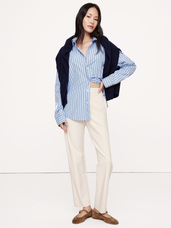 We love when a pant that looks as good as it feels, so we cut this high-rise slim pant in our best-selling Refined Bi-Stretch—a favorite for its stretchy feel and soft structure. Look closely: our designers chose a Hollywood waistband and darts at the back waist to create a high-rise with clean lines.