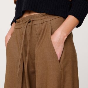 High-Rise Pleated Barrel Flannel Pull-On Pant