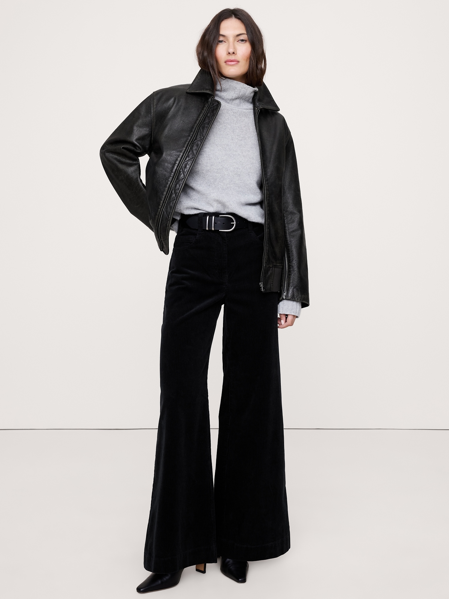 We took the silhouette of our favorite high-rise wide-leg jeans and reimagined them in cold-weather ready corduroy. Plus, we added a fully functional fly and some hidden elastic at the back waist for a custom fit.