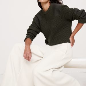 Everything about these pants is extra: a super-wide leg, an ultra-high-rise, and a midweight crepe fabric that luxe. High-Rise Super-Wide Leg: High-waisted, Fitted through waist and hip. Straight through the thigh with an ultra-wide leg. Full length. Invisible zip at wearer’s left with interior anchor button. Side seam pockets. Unlined. #826945