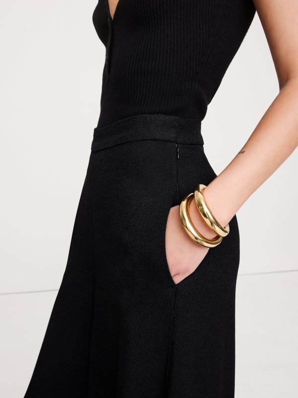 Everything about these pants is extra: a super-wide leg, an ultra-high-rise, and a midweight crepe fabric that luxe. High-Rise Super-Wide Leg: High-waisted, Fitted through waist and hip. Straight through the thigh with an ultra-wide leg. Full length. Invisible zip at wearer’s left with interior anchor button. Side seam pockets. Unlined. #826945
