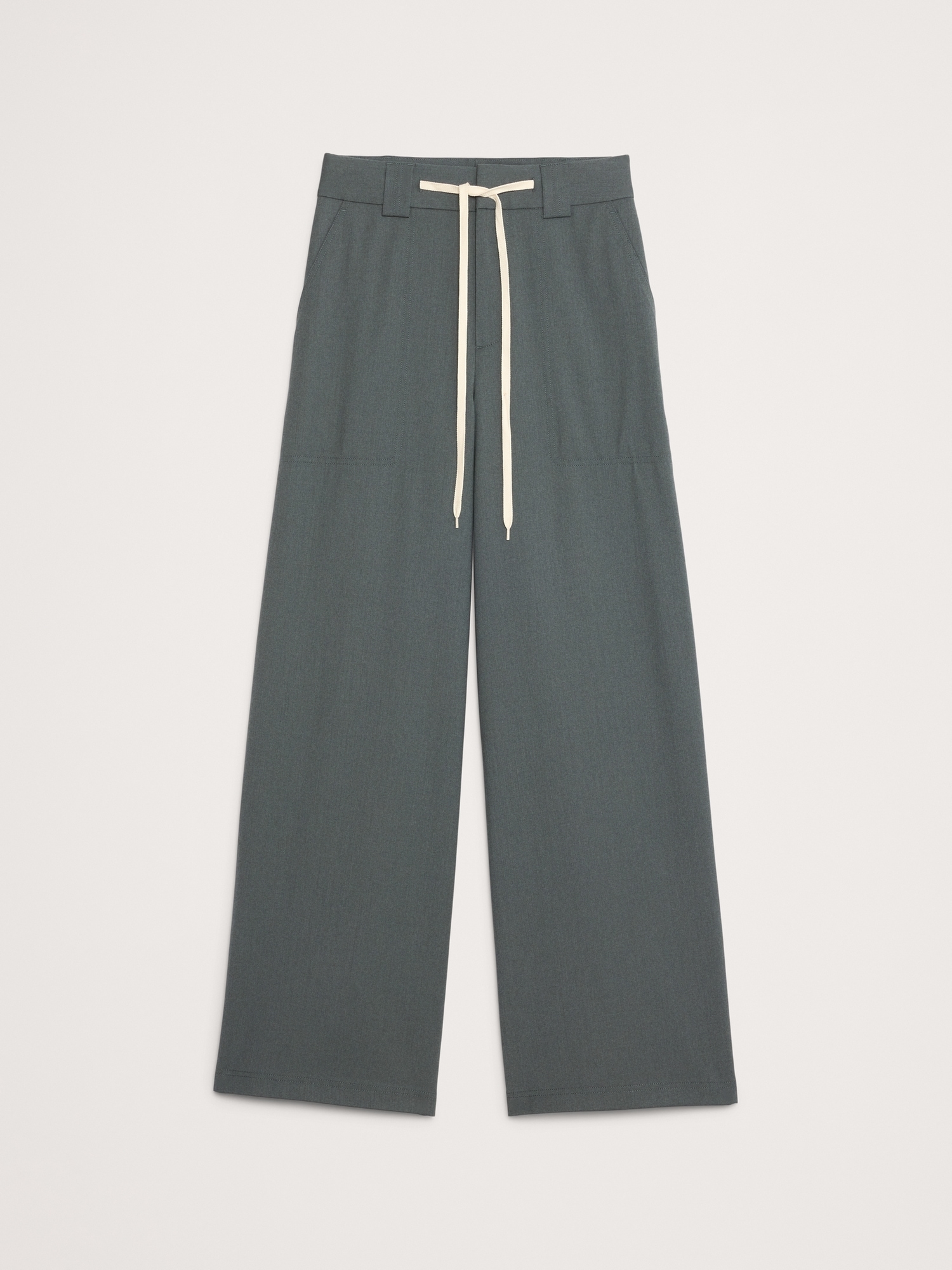 A very cool pair of pants. We kept the fit high-and-wide, with a drawstring at the waistband and patch pockets at back for a utility feel. To make them luxe, we reached for our best-selling Italian wool.