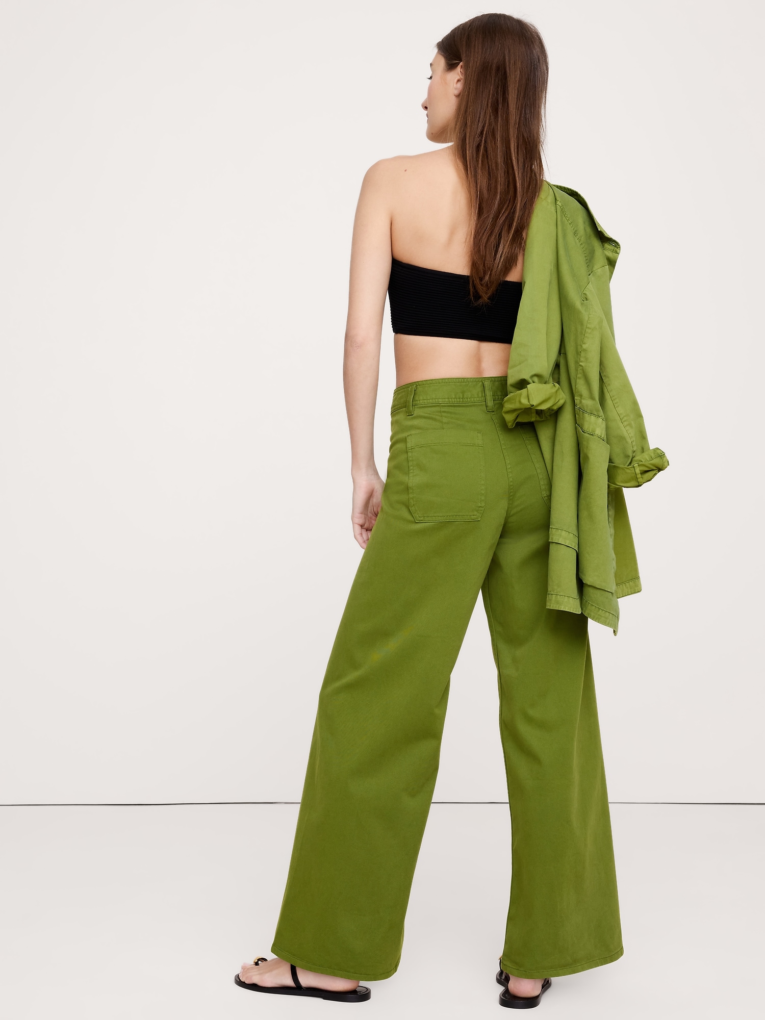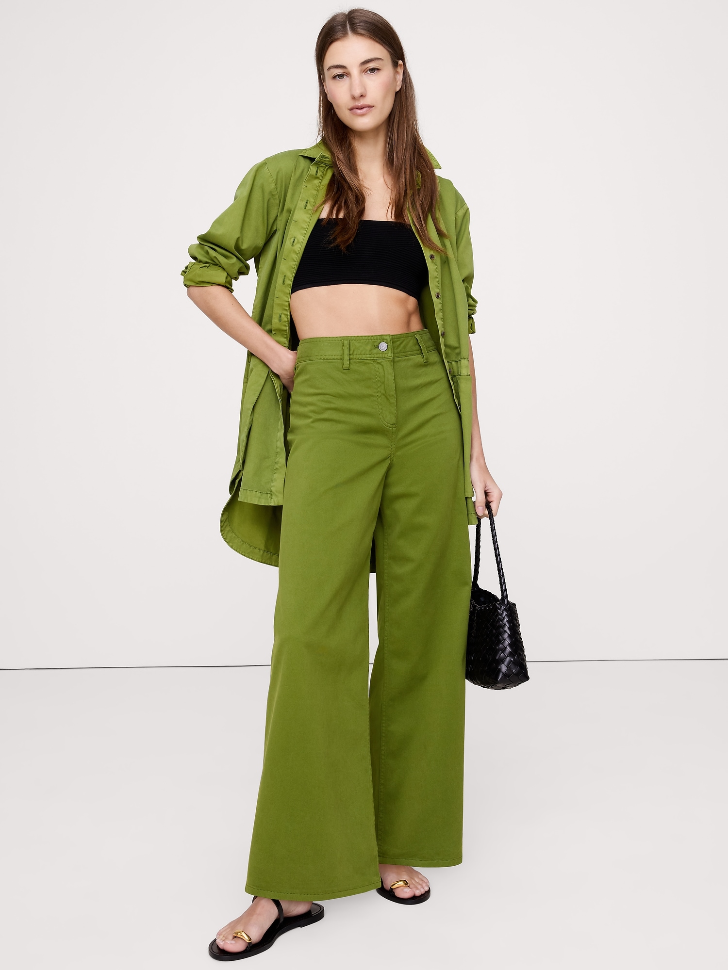 High-Rise Wide-Leg Lightweight Stretch-Cotton Pant