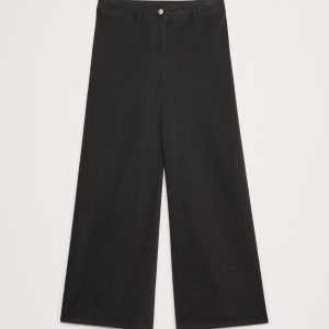 Wide leg: High rise. Fitted waist and hip, with a straight leg. Ankle length.