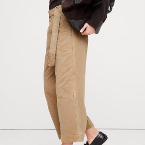 A high-and-wide version the classic chino, we opted for a paneled construction and a slider belt for a utilitarian take. Plus, a garment wash adds already-loved softness.