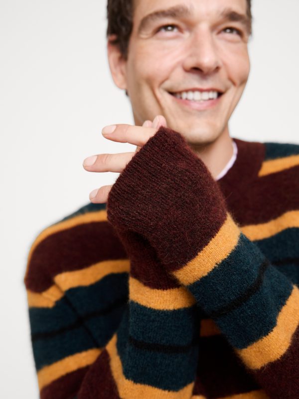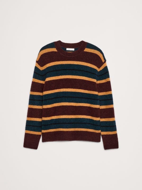 We love the cozy, brushed finish of this extra-warm alpaca and wool blend so we put it to use in a classic crew-neck silhouette with stripes that show off its rich colors.