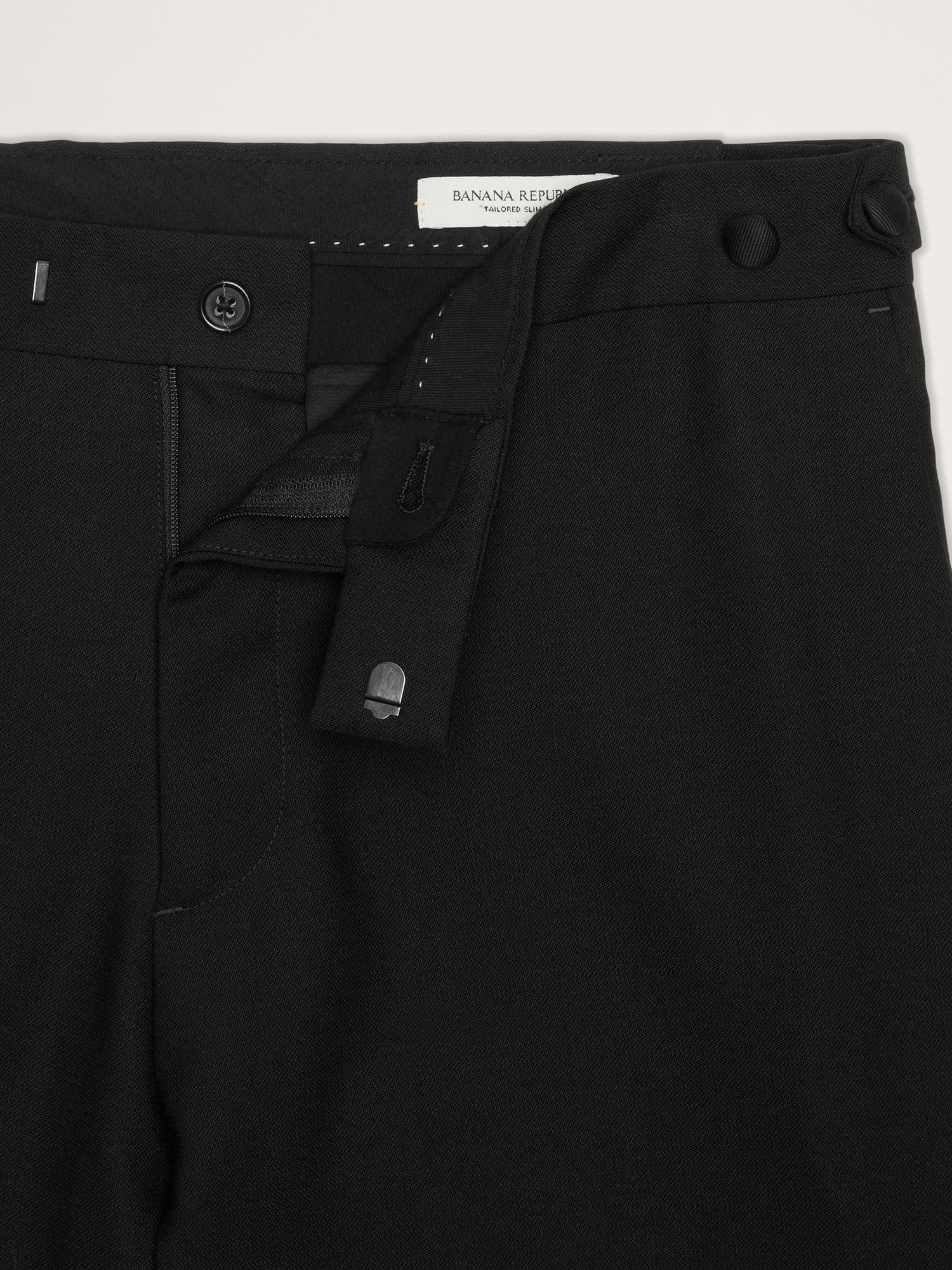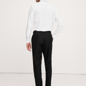 Exquisitely tailored, these timeless tuxedo pants offers elevated style that stands up to the seasons. Made from Italian virgin wool, our designers employed a classic Barathea weave, classic faille side stripes and our tailored slim fit for a natural look that’s especially polished. Button tabs at the waist offer a customizable fit.