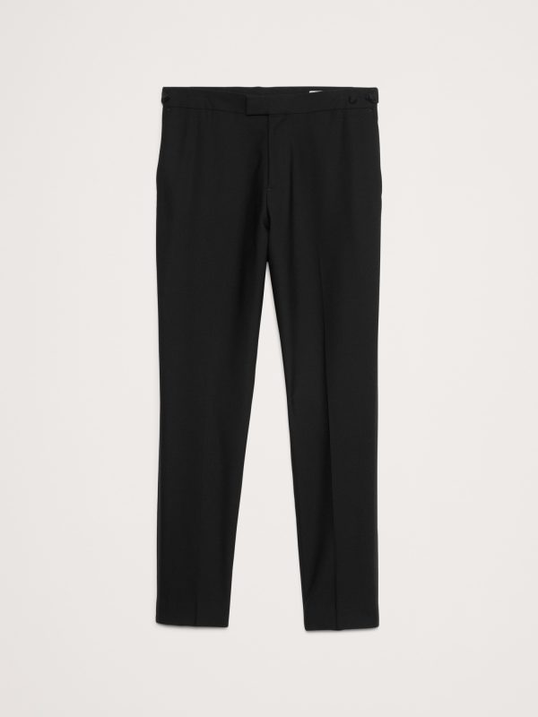 Exquisitely tailored, these timeless tuxedo pants offers elevated style that stands up to the seasons. Made from Italian virgin wool, our designers employed a classic Barathea weave, classic faille side stripes and our tailored slim fit for a natural look that’s especially polished. Button tabs at the waist offer a customizable fit.