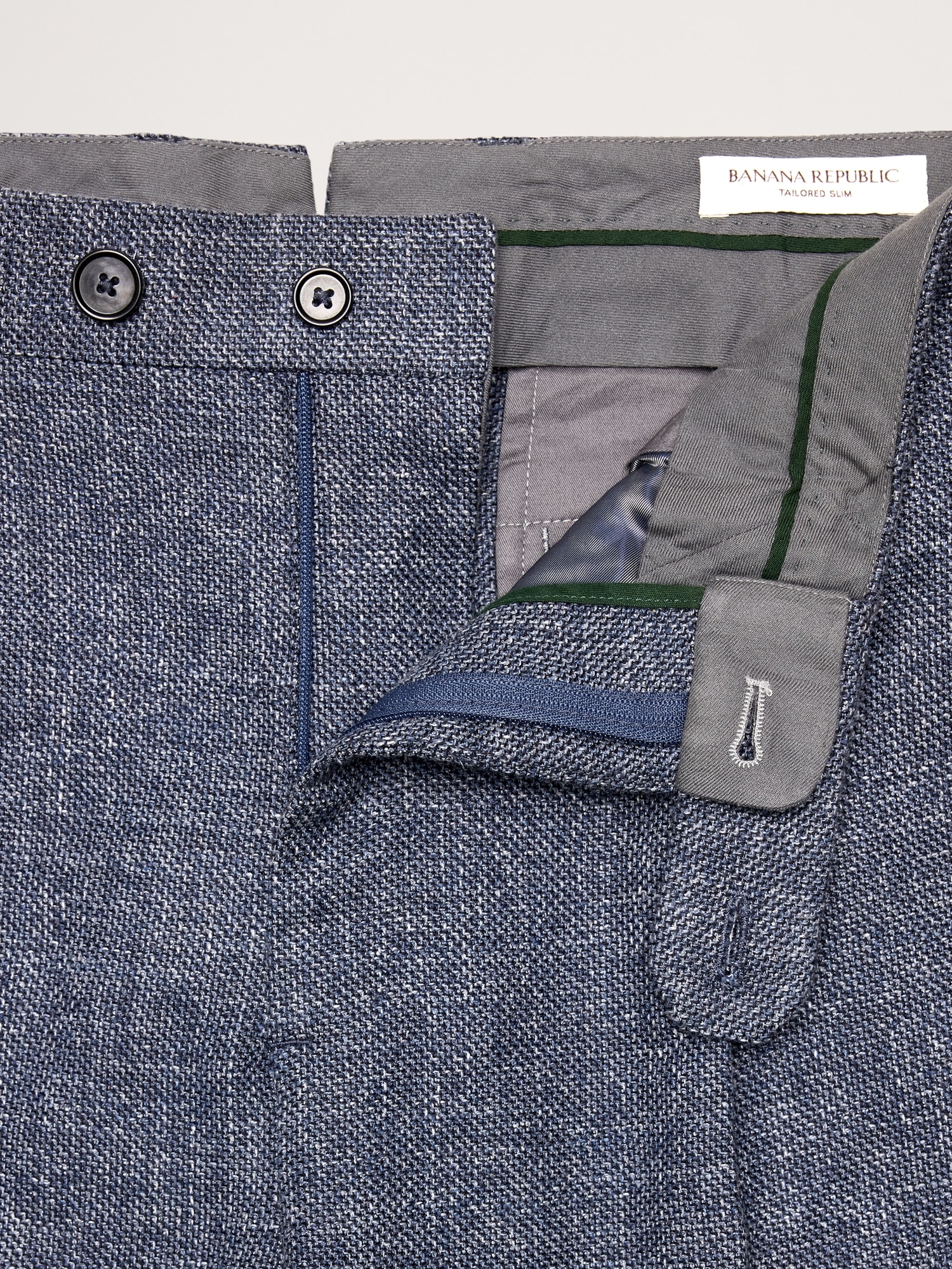 Tailored Slim Fit: Mid-rise. Tapered slim leg. Extra length at the hem and through the back rise for ease of alterations.