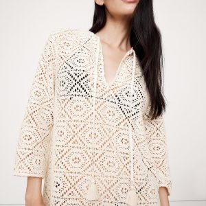 Designed for long weekends, we cut this kaftan-style beach dress in a soft cotton-blend lace we love for its crochet-like appearance.