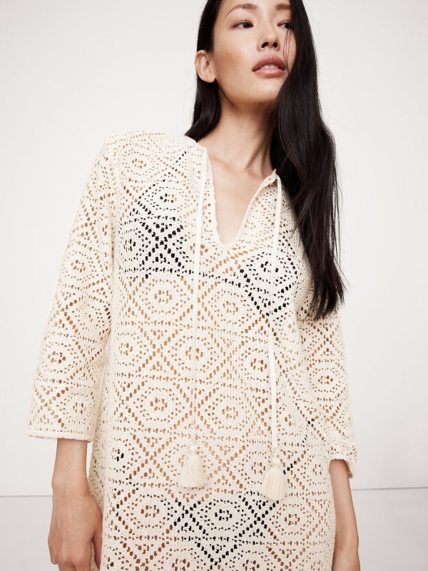 Designed for long weekends, we cut this kaftan-style beach dress in a soft cotton-blend lace we love for its crochet-like appearance.