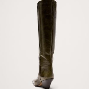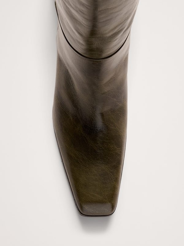 Our take on the season’s Western boot silhouettes, we opted here for a squared-toe and minimalist styling—the better to show off your choice of beautiful Italian leather or suede.