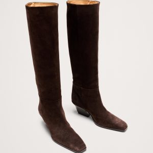 Our take on the season’s Western boot silhouettes, we opted here for a squared-toe and minimalist styling—the better to show off your choice of beautiful Italian leather or suede.