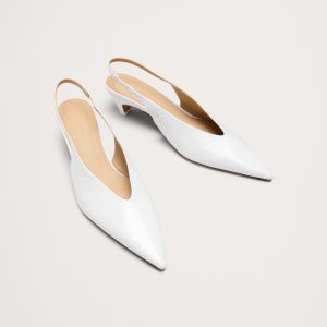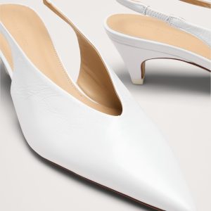 Set atop a modest kitten heel, these sleek pointed-toe slingback heels are crafted from Italian leather.