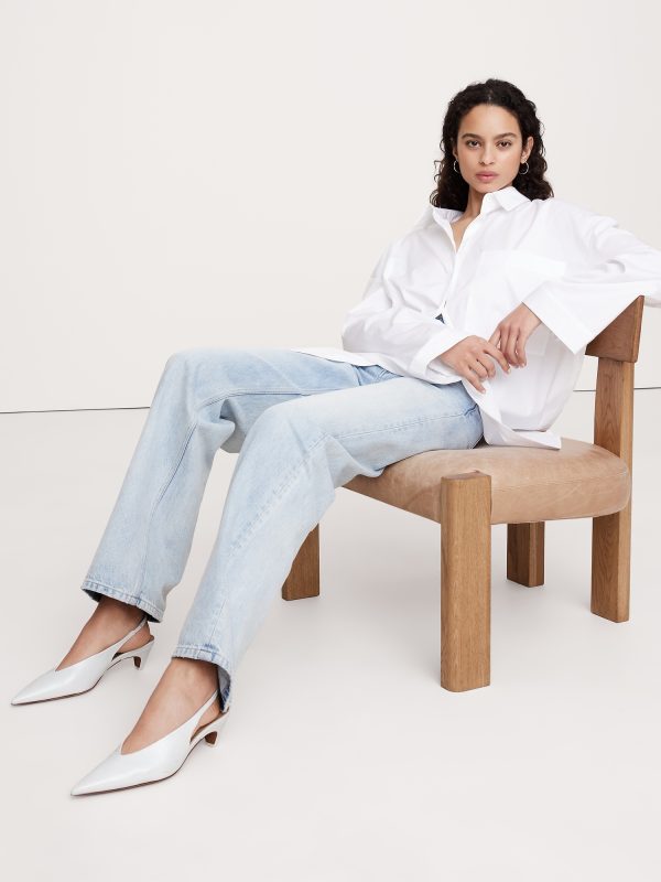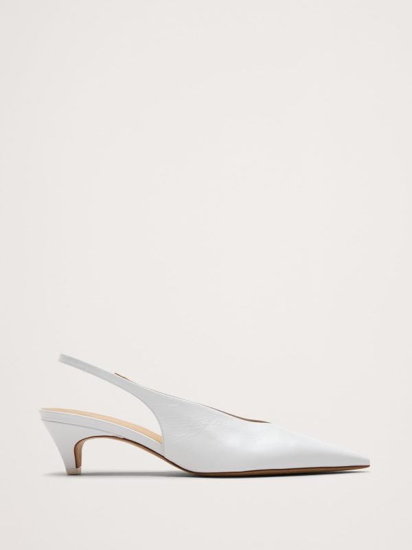 Set atop a modest kitten heel, these sleek pointed-toe slingback heels are crafted from Italian leather.