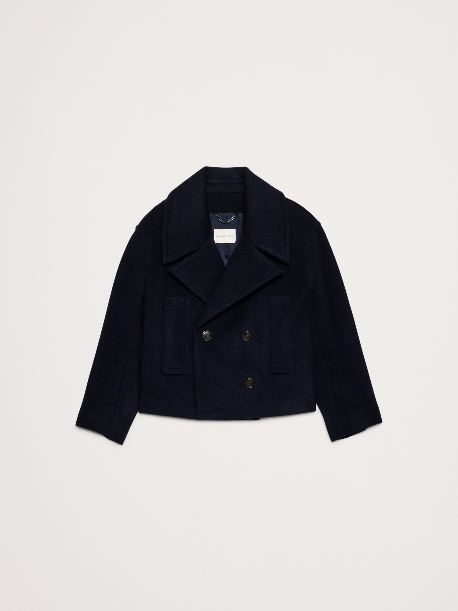 A very cool peacoat. We cut this one from our Italian melton wool-blend, so it’ll last for years to come. Plus, we kept the fit easy and a little short, as an invitation to play with proportions.