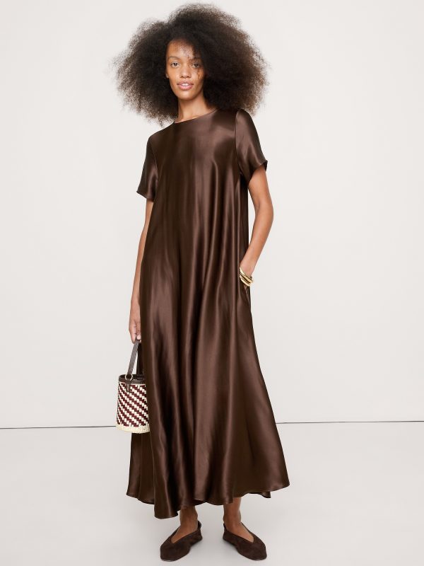 Italian Satin Trapeze Maxi Dress